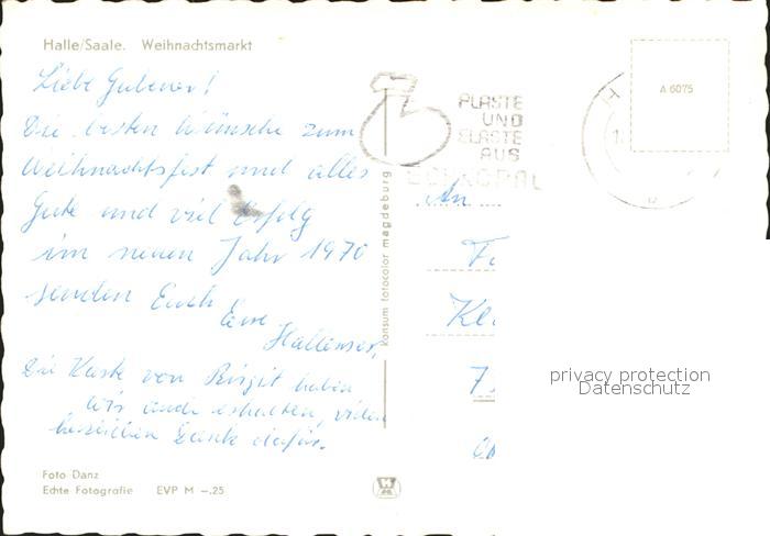 72017613 alte Postkarte Halle Saale Weihnachtsmarkt postalisch gelaufen Erhaltung siehe scans KatCode: 11110015002000