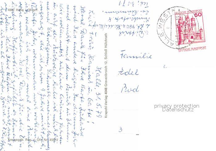 72814486 alte Postkarte Halle Westfalen Fliegeraufnahme postalisch gelaufen Erhaltung siehe scans [WerneD78] KatCode: 11110005754012
