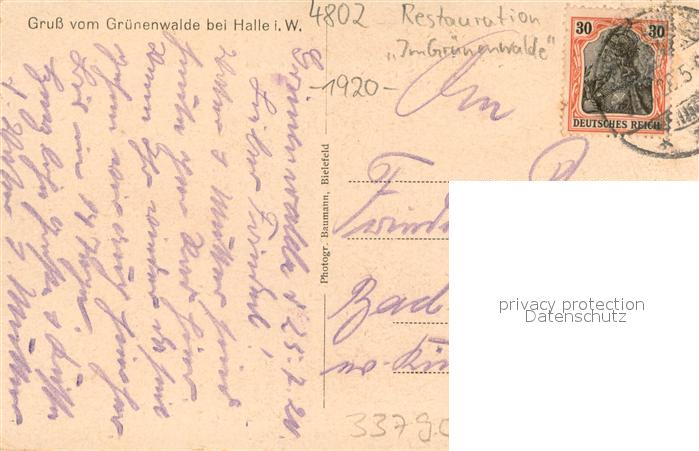 73704747 alte Postkarte Halle Westfalen Restaurant Im Gruenenwalde mit Knuell-Berg postalisch gelaufen Erhaltung siehe scans [LiesaD40] KatCode: 11110005754012
