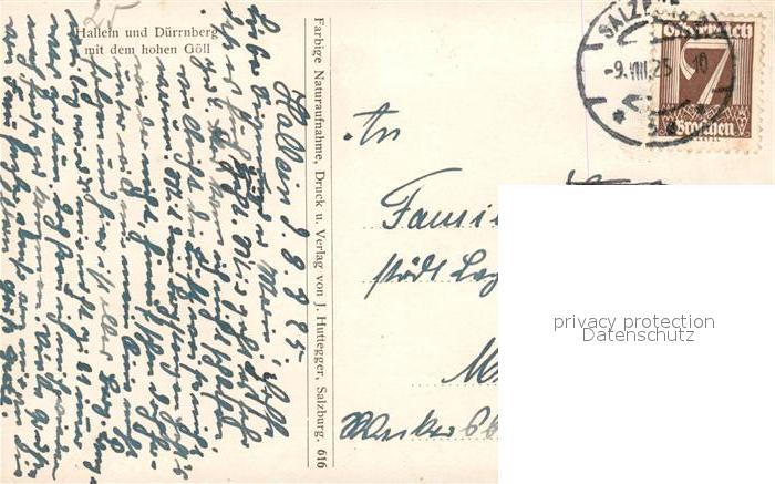 43258991 alte Postkarte Hallein Gesamtansicht mit Duerrnberg und Hohem Goell Berchtesgadener Alpen postalisch gelaufen Erhaltung siehe scans [FriedD77] KatCode: 11390323050205