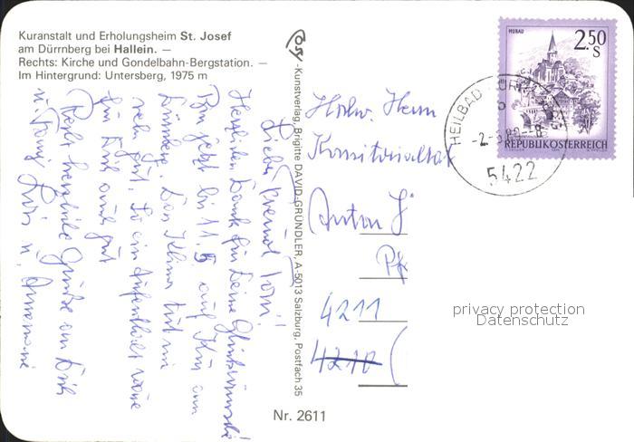 72049604 alte Postkarte Hallein Kuranstalt und Erholungsheim St Josef am Duernberg postalisch gelaufen Erhaltung siehe scans KatCode: 11390323050205