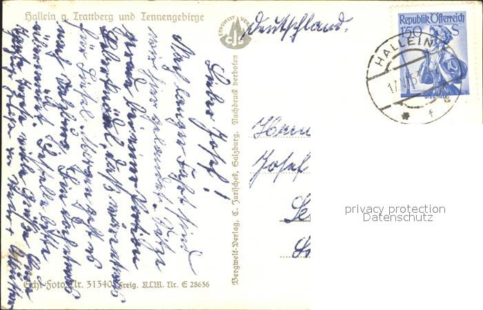 72273545 alte Postkarte Hallein mit Trottberg und Tennengebirge postalisch gelaufen Erhaltung siehe scans KatCode: 11390323050205