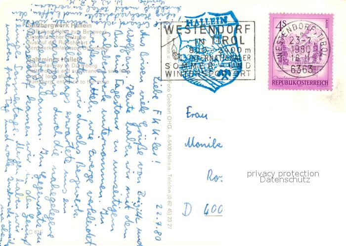 73184167 alte Postkarte Hallein Salzbergwerk Seilbahn am Duerrnberg postalisch gelaufen Erhaltung siehe scans [LiesaD40] KatCode: 11390323050205