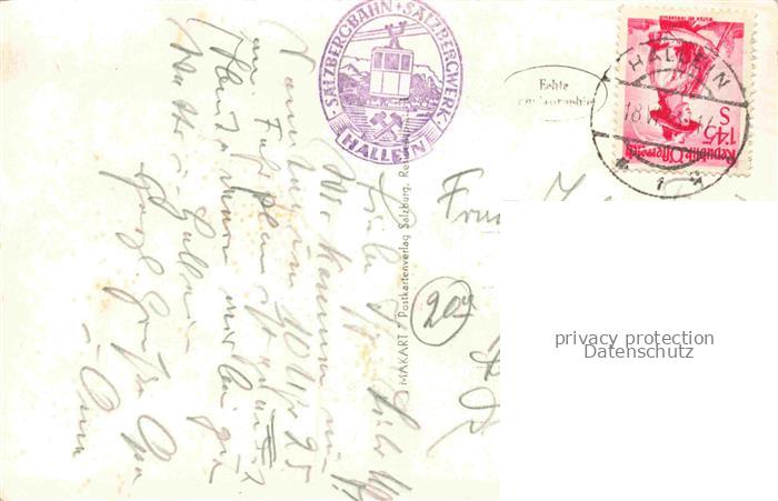74130472 alte Postkarte Hallein Salzburg AT Seilbahn Talstation postalisch gelaufen Erhaltung siehe scans [IrynaD87] KatCode: 11390323050205
