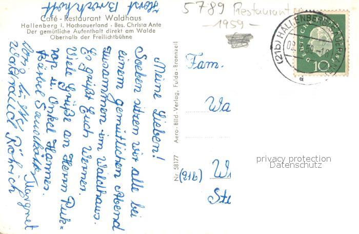 73695839 alte Postkarte Hallenberg Cafe Restaurant Waldhaus Panorama postalisch gelaufen Erhaltung siehe scans [WerneD78] KatCode: 11110005958020