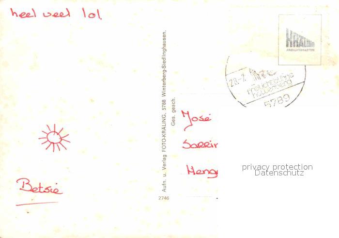 72787993 alte Postkarte Hallenberg Gesamtansicht Fachwerkhaeuser Freilichtbuehne Fliegeraufnahme postalisch gelaufen Erhaltung siehe scans [FriedD77] KatCode: 11110005958020