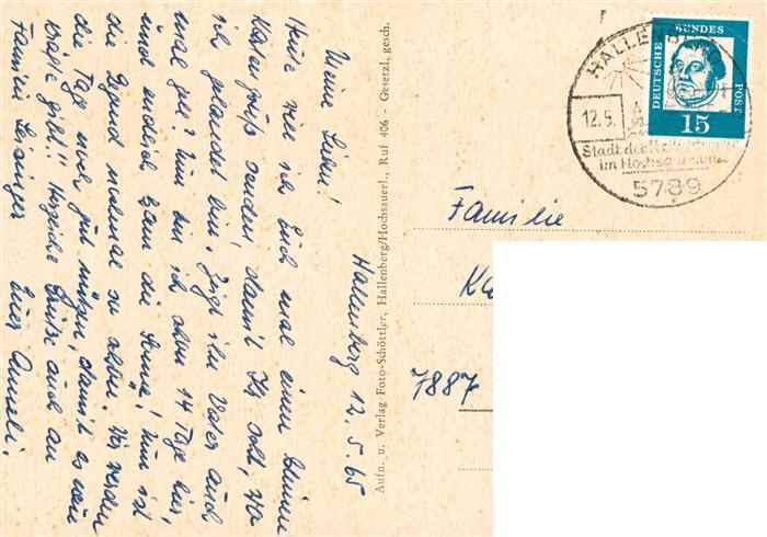 73905284 alte Postkarte Hallenberg Kirche Panorama Monument Ortsansichten postalisch gelaufen Erhaltung siehe scans [WerneD78] KatCode: 11110005958020