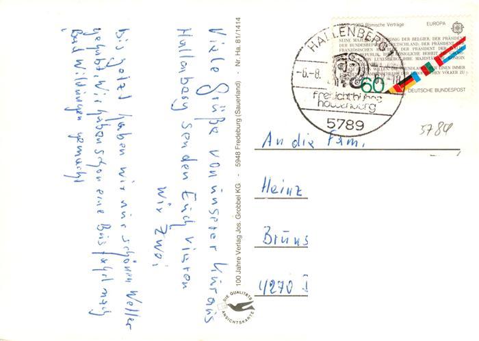 73914115 alte Postkarte Hallenberg Panorama Ortspartie Unterkirche St Josefs Haus postalisch gelaufen Erhaltung siehe scans [WerneD78] KatCode: 11110005958020