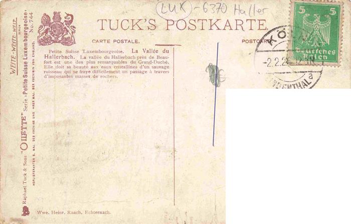 73972552 alte Postkarte Haller Luxembourg Hallerbachtal Luxemburger Schweiz Tucks Postkarte Oilette Kuenstlerkarte postalisch gelaufen Erhaltung siehe scans [FriedD77] KatCode: 11300