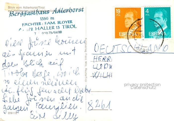 73070849 alte Postkarte Haller Tirol Berggasthof Adlerhorst Terrasse Haldensee und seine Bergwelt postalisch gelaufen Erhaltung siehe scans [FriedD77] KatCode: 11390331070811