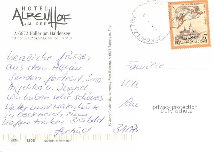 72913912 alte Postkarte Haller Tirol Hotel Alpenhof postalisch gelaufen Erhaltung siehe scans [KathaD81] KatCode: 11390331070811
