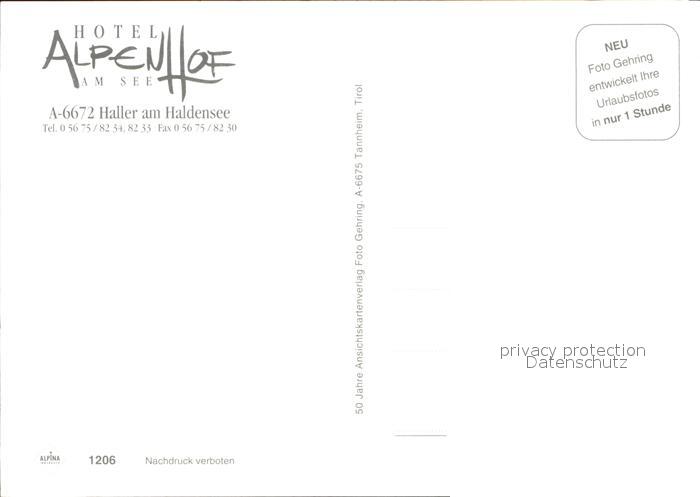 72500638 Haller Tirol Hotel Alpenhof Haldensee postalisch nicht gelaufen Erhaltung siehe scans KatCode: 11390331070811