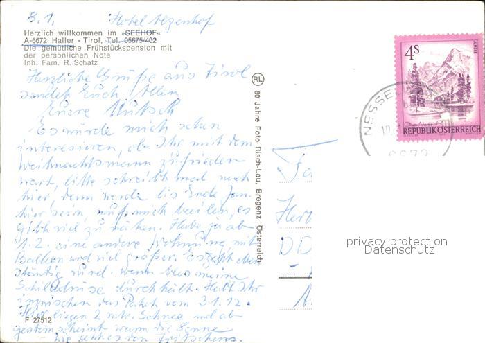 72064133 alte Postkarte Haller Tirol Seehof Hotel Gaststube postalisch gelaufen Erhaltung siehe scans KatCode: 11390331070811
