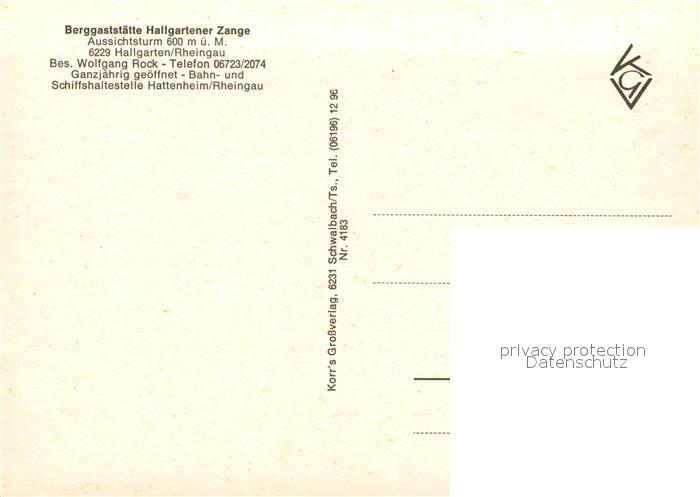 73214662 Hallgarten Rheingau Berggaststaette Zallgartener Zange Terrasse Restaurant Mapper Schanze Ruine Wappen postalisch nicht gelaufen Erhaltung siehe scans [FriedD77] KatCode: 11110006439012