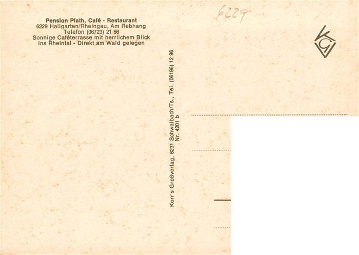 73872423 Hallgarten Rheingau Cafe Restaurant Pension Platz postalisch nicht gelaufen Erhaltung siehe scans [FriedD77] KatCode: 11110006439012