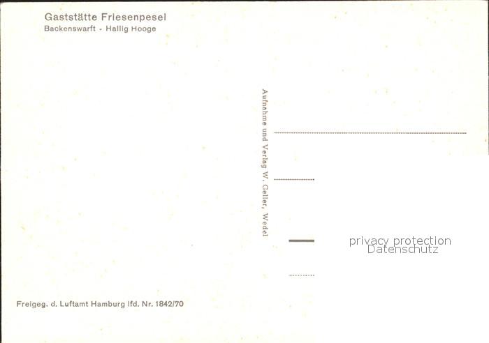 72105732 Hallig Hooge Gaststaette Friesenpesel Backenswarft Fliegeraufnahme postalisch nicht gelaufen KatCode: 11110001054050