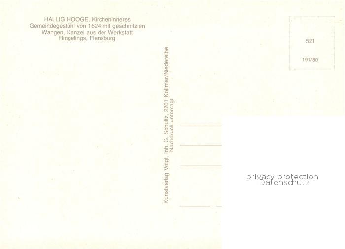 73624605 Hallig Hooge Kircheninneres Gemeindegestuehl Kanzel postalisch nicht gelaufen Erhaltung siehe scans [FriedD77] KatCode: 11110001054050