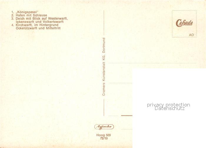 73512268 Hallig Hooge Koenigspesel Hafen Schleuse Deich Westerwarft Kirchwarft postalisch nicht gelaufen Erhaltung siehe scans [WerneD78] KatCode: 11110001054050