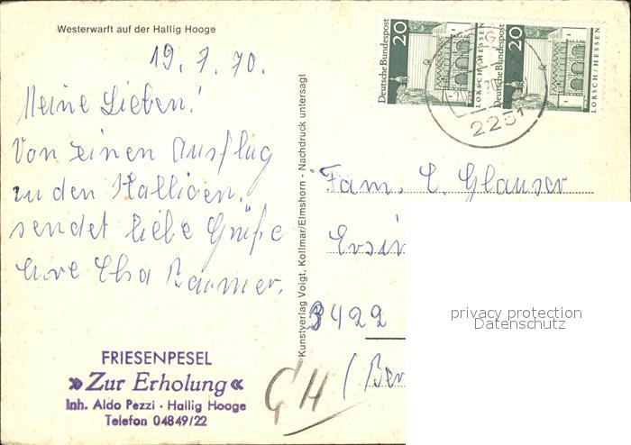 72381798 alte Postkarte Hallig Hooge Westerwarft postalisch gelaufen Erhaltung siehe scans KatCode: 11110001054050
