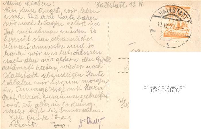 43111361 alte Postkarte Hallstatt Austria am Hallstaetter See postalisch gelaufen Erhaltung siehe scans [FriedD77] KatCode: 11390315040709