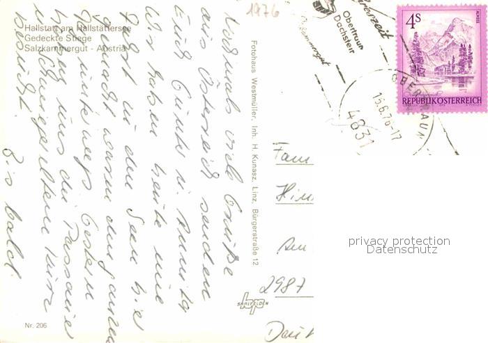 72889201 alte Postkarte Hallstatt Austria Am Hallstaettersee Gedeckte Stiege postalisch gelaufen Erhaltung siehe scans [LiesaD40] KatCode: 11390315040709