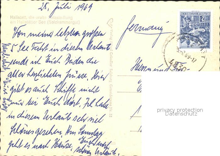 72438991 alte Postkarte Hallstatt Austria Halstatter See postalisch gelaufen Erhaltung siehe scans KatCode: 11390315040709