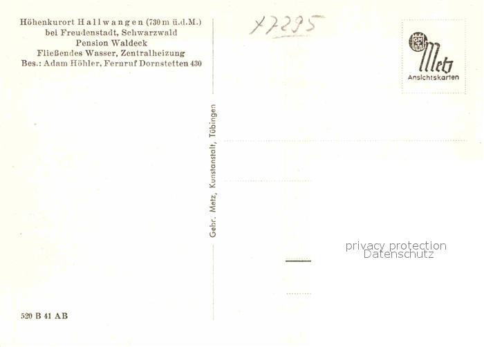 42746716 Hallwangen Dornstetten Freudenstadt BW Pension Waldeck postalisch nicht gelaufen Erhaltung siehe scans [KathaD81] Kath Katcode 11110008237019