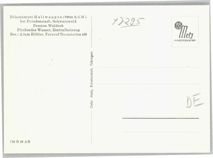 40714297 Hallwangen Pension Waldeck postalisch nicht gelaufen Alte Ansichtskarte Postkarte Katcode 11110008237019