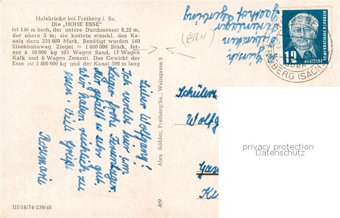 73801545 alte Postkarte Halsbruecke Die Hohe Esse postalisch gelaufen Erhaltung siehe scans [WerneD78] KatCode: 11110014177210