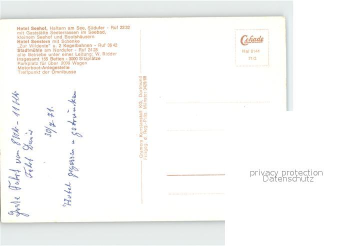 72921636 Haltern Hotel Seehof Stadtmuehle Seeterrassen postalisch nicht gelaufen Erhaltung siehe scans [NatalD47] KatCode: 11110005562016