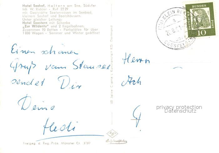 33050490 alte Postkarte Haltern See Fliegeraufnahme Hotel Seehof postalisch gelaufen Erhaltung siehe scans [NatalD47] KatCode: 11110005562016