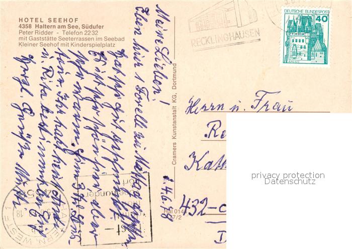 73607981 alte Postkarte Haltern See Fliegeraufnahme mit Seehof Seestern Seebad Seeterrassen und Stadmuehle postalisch gelaufen Erhaltung siehe scans [WerneD78] KatCode: 11110005562016