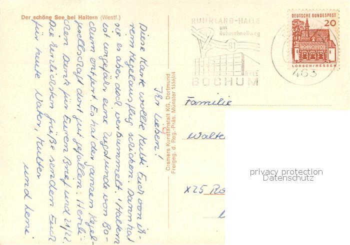 73711978 alte Postkarte Haltern See Fliegeraufnahme mit Strandbad Alter Garten Zeltplatz Jugendherberge Bootsverleih postalisch gelaufen Erhaltung siehe scans [WerneD78] KatCode: 11110005562016