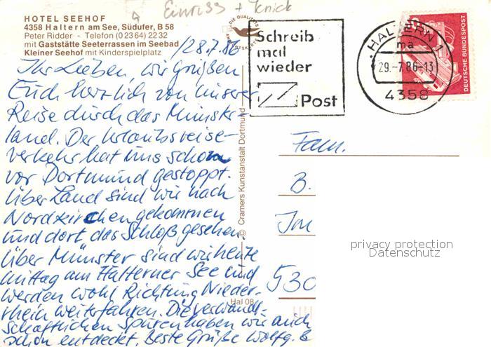 72790527 alte Postkarte Haltern See Hotel Seehof postalisch gelaufen Erhaltung siehe scans [LiesaD40] KatCode: 11110005562016