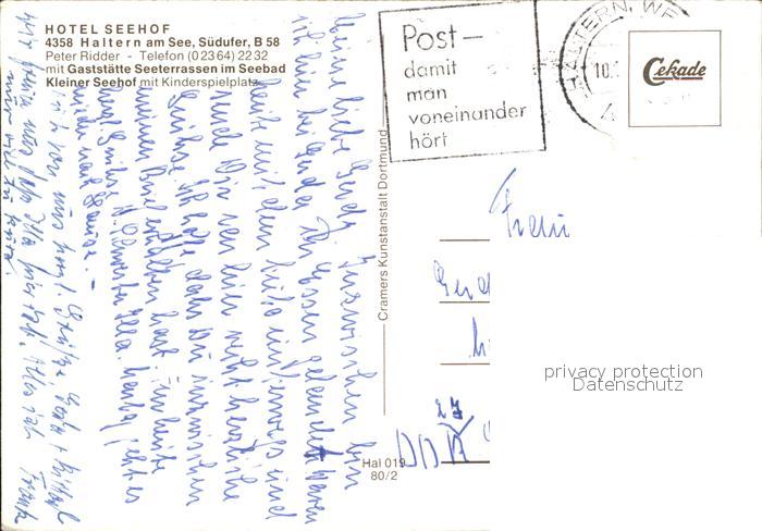 72534462 alte Postkarte Haltern See Hotel Seehof postalisch gelaufen Erhaltung siehe scans [AndreD76 kt121box] KatCode: 11110005562016