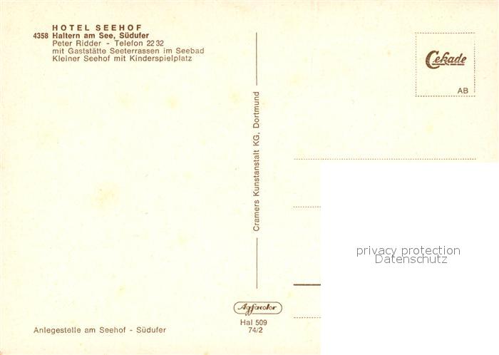 73048217 Haltern See Hotel Seehof Anlegestelle postalisch nicht gelaufen Erhaltung siehe scans [WerneD78] KatCode: 11110005562016