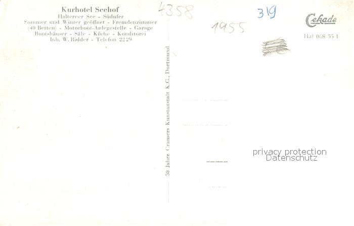 73700500 Haltern See Hotel-Seehof Heimingshof Stadtmuehle Walzenwehr Siebenteufelsturm Westruper-Heide postalisch nicht gelaufen Erhaltung siehe scans [LiesaD40] KatCode: 11110005562016