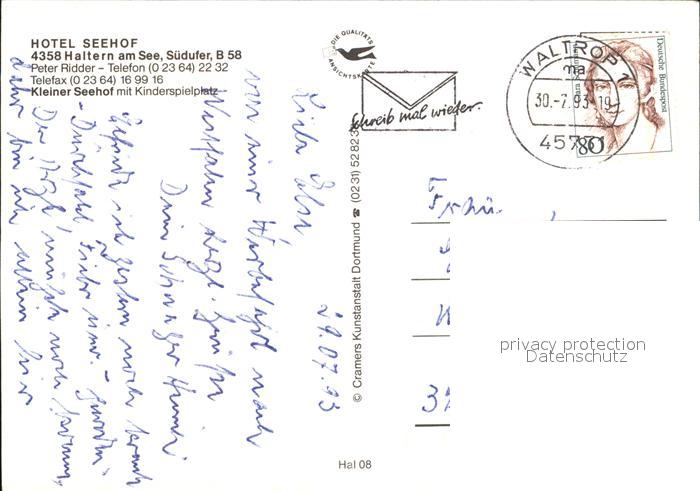 72523690 alte Postkarte Haltern See Hotel Seehof Seeterrassen postalisch gelaufen Erhaltung siehe scans KatCode: 11110005562016