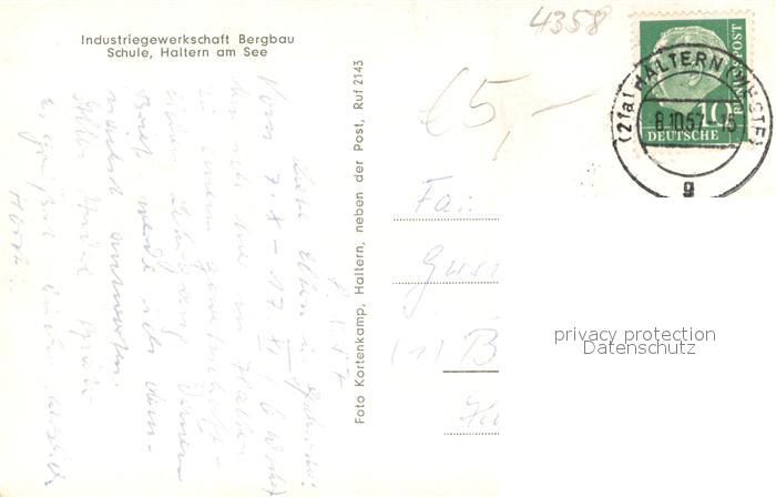 73709795 alte Postkarte Haltern See Industriegewerkschaft Bergbau Schule postalisch gelaufen Erhaltung siehe scans [LiesaD40] KatCode: 11110005562016
