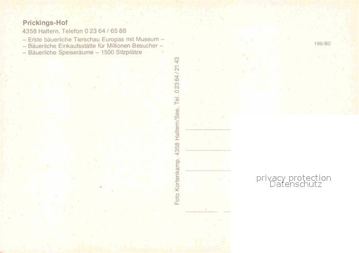72780400 Haltern See Prickings Hof Tierschau Museum Gaststaette postalisch nicht gelaufen Erhaltung siehe scans [FriedD77] KatCode: 11110005562016