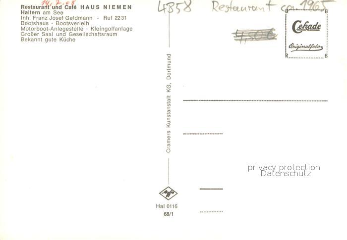 73710286 Haltern See Restaurant Haus Niemen Steverpartie saal Strandbad postalisch nicht gelaufen Erhaltung siehe scans [LiesaD40] KatCode: 11110005562016