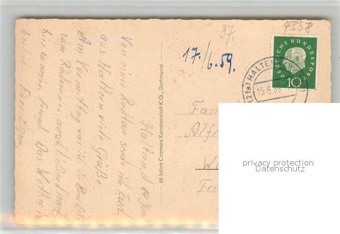 43343657 alte Postkarte Haltern See Stausee Stadtblick Stadtmuehle Seehof Stever am Helmingshof postalisch gelaufen Erhaltung siehe scans [WerneD78] KatCode: 11110005562016