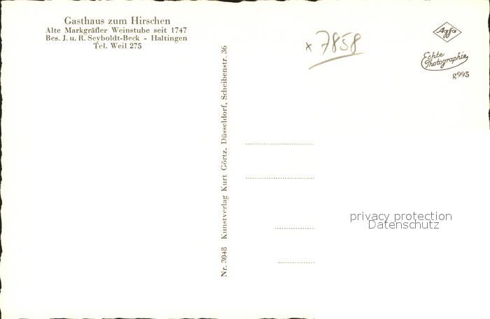 32212713 Haltingen Weil am Rhein BW Gasthaus zum Hirschen postalisch nicht gelaufen Erhaltung siehe scans Alte Ansichtskarte Postkarte Matt Katcode 11110008336091
