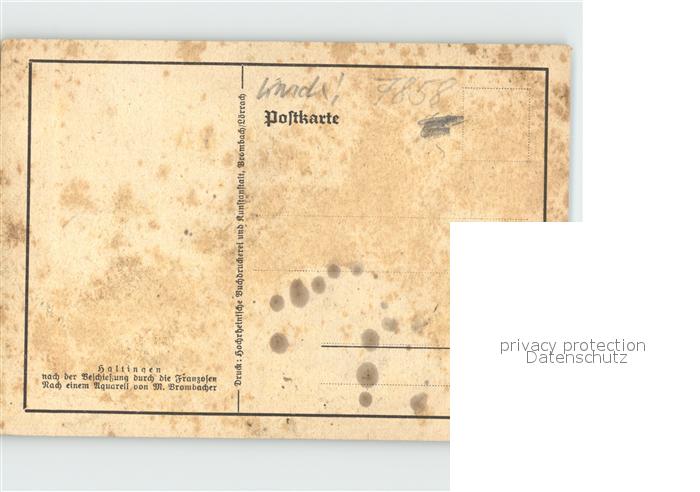 32363961 Haltingen Weil am Rhein BW nach franzoesischer Beschiessung Aquarell postalisch nicht gelaufen Erhaltung siehe scans Alte Ansichtskarte Postkarte Wern Katcode 11110008336091