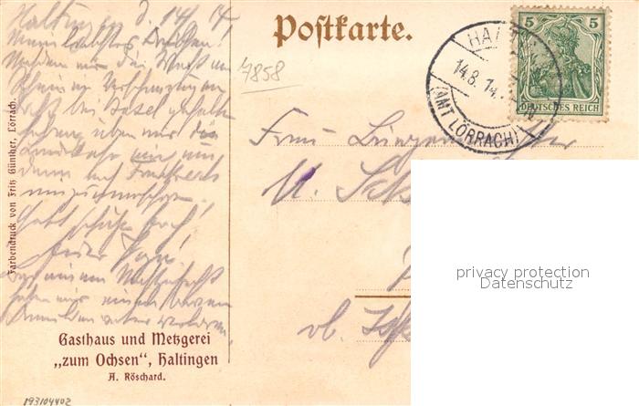 33277186 Haltingen Weil am Rhein BW Oetlingen Gasthof zum Ochsen postalisch gelaufen Erhaltung siehe scans [NatalD47] alte Postkarte Nata Katcode 11110008336091
