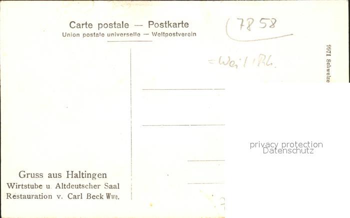 32207721 Haltingen Weil am Rhein BW Wirtsstube Altdeutscher Saal postalisch gelaufen Erhaltung siehe scans Alte Ansichtskarte Postkarte alte Postkarte Matt Katcode 11110008336091