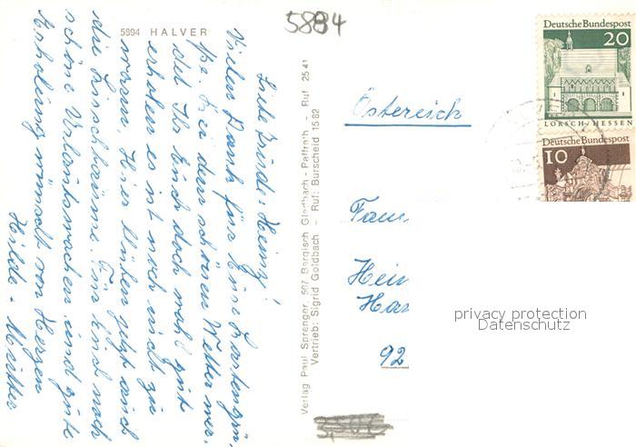 73710051 alte Postkarte Halver Teilansicht Rathaus Ev. Kirche postalisch gelaufen Erhaltung siehe scans [LiesaD40] KatCode: 11110005962012