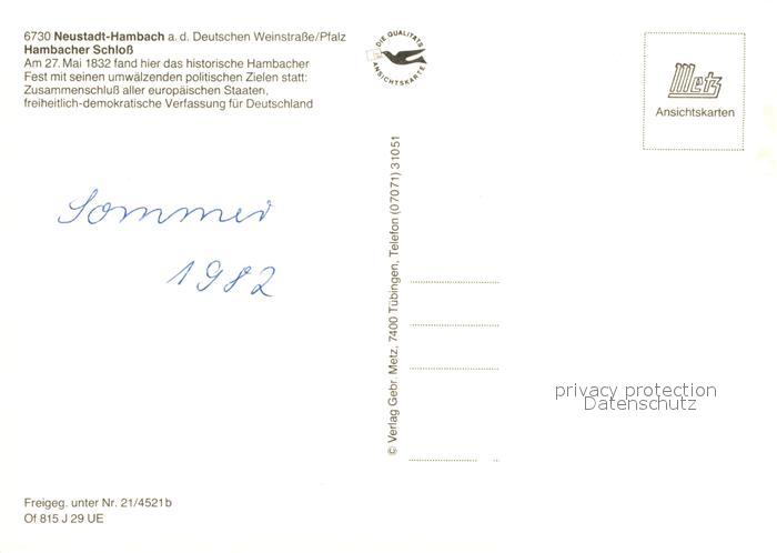 73541973 Hambach Neustadt Fliegeraufnahme Hambacher Schlo postalisch nicht gelaufen Erhaltung siehe scans [LiesaD40] KatCode: 11110007316000