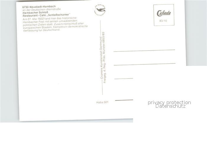 72527629 Hambach Neustadt Hambacher Schloss Restaurant Cafe Schlossschaenke Fliegeraufnahme postalisch nicht gelaufen Erhaltung siehe scans KatCode: 11110007316000