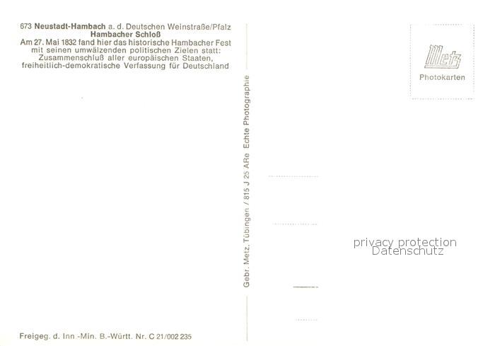 73726033 Hambach Neustadt Hambacher Schloss postalisch nicht gelaufen Erhaltung siehe scans [LiesaD40] KatCode: 11110007316000